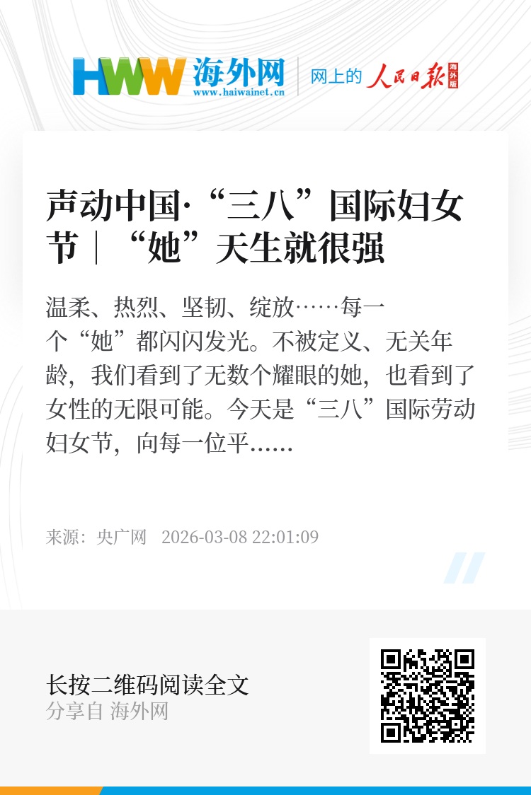 今天是“三八”国际劳动妇女节,向每一位平凡而又了不起的女性致敬。以奋斗致芳华,愿你自有光芒、熠熠生辉。妇女节快乐!