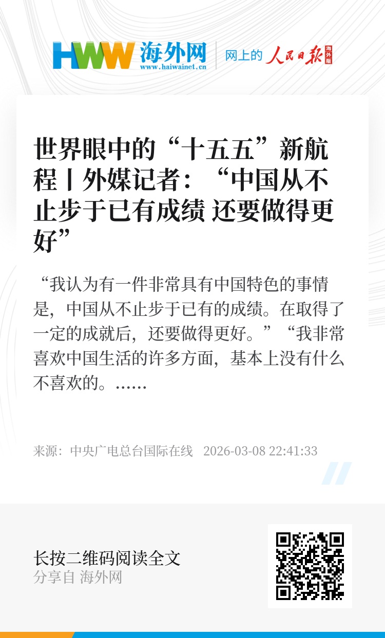 “我认为有一件非常具有中国特色的事情是,中国从不止步于已有的成绩。在取得了一定的成就后,还要做得更好。”
