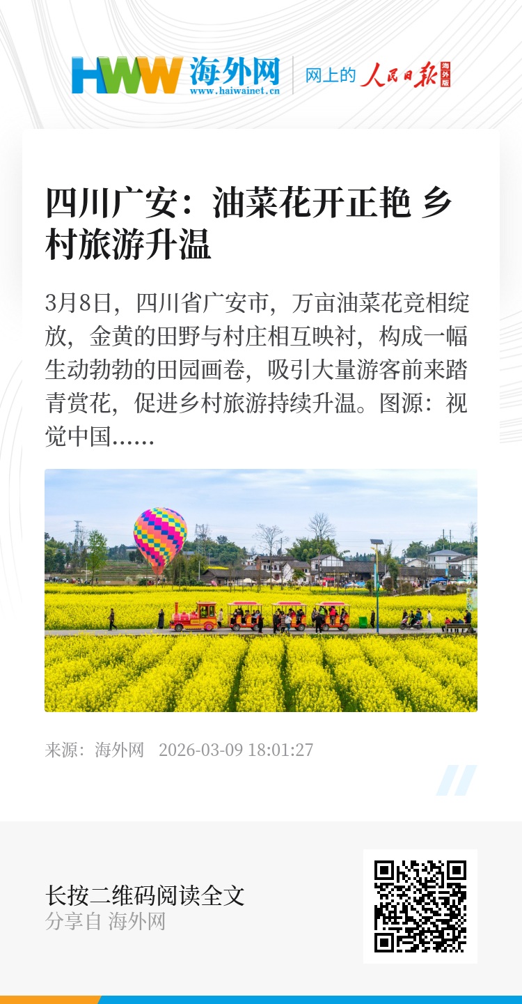 32936699,.四川广安:油菜花开正艳 乡村旅游升温,.2026-03-09 18:01:27,.204589,.黄之安、侯兴川