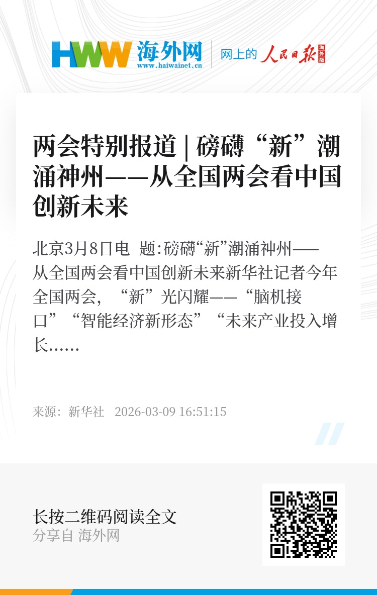 新华社北京3月8日电 题:磅礴“新”潮涌神州——从全国两会看中国创新未来