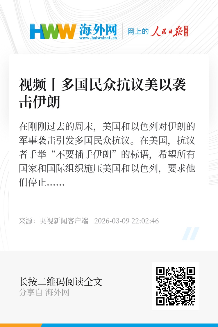 在美国,抗议者手举“不要插手伊朗”的标语,希望所有国家和国际组织施压美国和以色列,要求他们停止战争,不要轰炸儿童。英国反战人士表示,世界政治正面临着最危险的时刻,美以的袭击不仅在伊朗国内造成杀戮,还引发了更大规模的中东战争,让人恐惧和愤怒。加拿大抗议者表示,他们不接受以色列和美国在伊朗所作的一切。