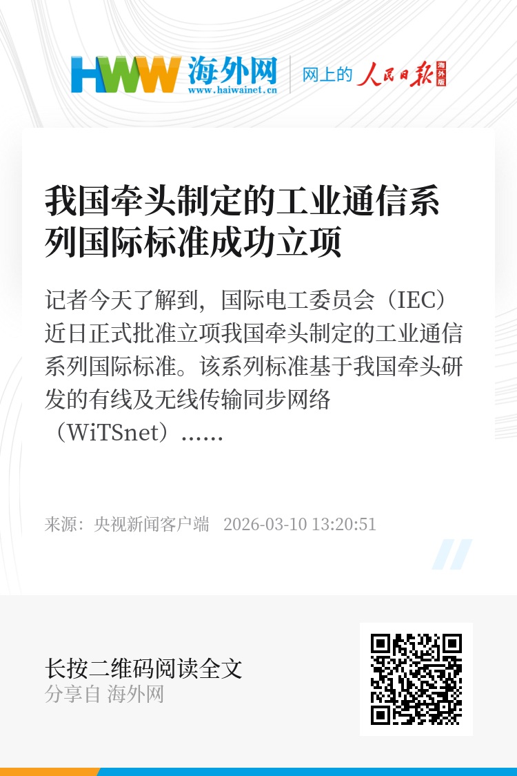 WiTSnet工业通信系列国际标准的成功立项,标志着全球产业界对我国在工业网络领域开辟的新技术路径的高度认可,对提升制造业自主可控能力、优化产业链协同、推动制造业数智化转型具有重要意义。(总台央视记者 李晶晶)
