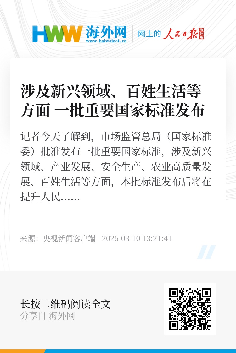 记者今天了解到,市场监管总局(国家标准委)批准发布一批重要国家标准,涉及新兴领域、产业发展、安全生产、农业高质量发展、百姓生活等方面,本批标准发布后将在提升人民群众生活品质、保障生命财产安全等方面发挥重要作用。