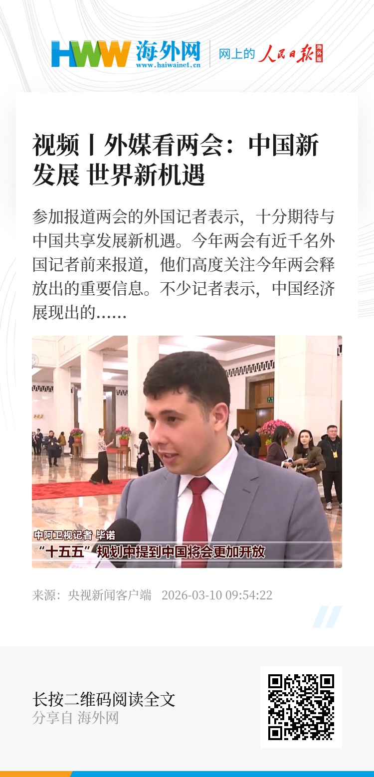 今年两会有近千名外国记者前来报道,他们高度关注今年两会释放出的重要信息。不少记者表示,中国经济展现出的活力与韧性,令他们印象深刻。