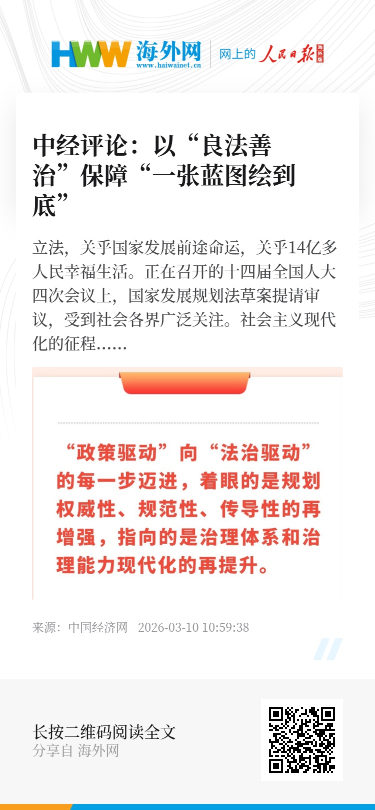 法治护航,“政策驱动”向“法治驱动”的每一步迈进,着眼的是规划权威性、规范性、传导性的再增强,指向的是治理体系和治理能力现代化的再提升。往深里看,它彰显的是党的领导、人民当家作主、依法治国的有机统一。