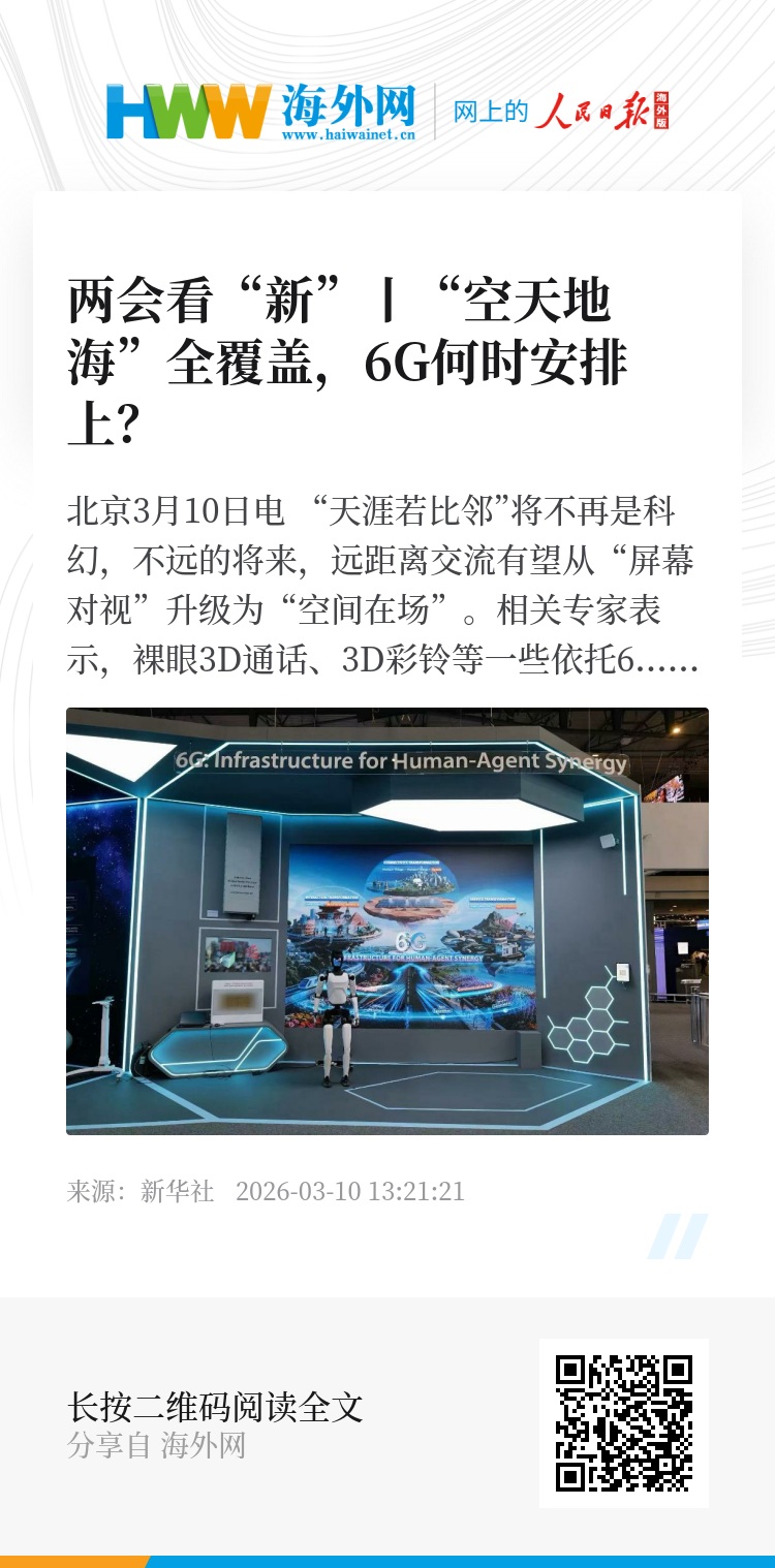 “我们的目标是要把6G构想的‘全域感知’‘智能泛在’等能力,拆解成一个个可实现、可验证的技术模块,并转化为实实在在的生产力,让6G真正服务于经济发展、改善人民生活。”全国人大代表、中兴通讯股份有限公司高级副总裁苗伟说,今年两会提到前瞻布局6G产业,更加增强了我们坚定完成任务的信心。