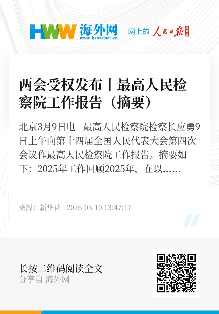 新华社北京3月9日电 最高人民检察院检察长应勇9日上午向第十四届全国人民代表大会第四次会议作最高人民检察院工作报告。摘要如下: