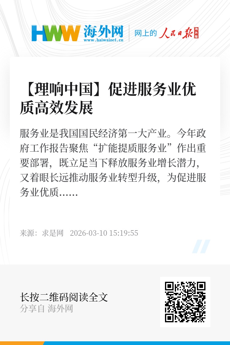 服务业是我国国民经济第一大产业。今年政府工作报告聚焦“扩能提质服务业”作出重要部署,既立足当下释放服务业增长潜力,又着眼长远推动服务业转型升级,为促进服务业优质高效发展确定了行动路径。