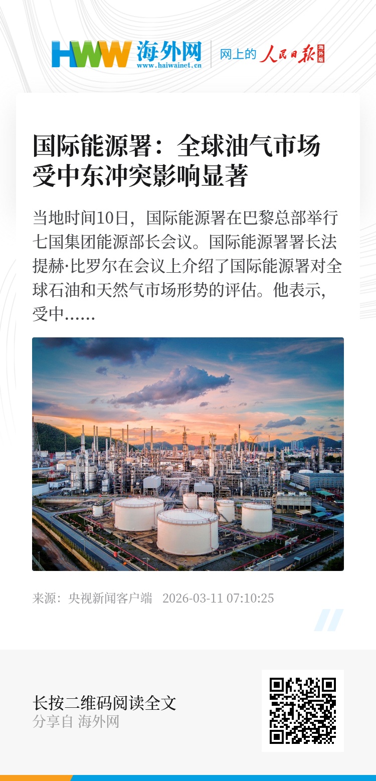比罗尔表示,鉴于当前石油市场形势,国际能源署已召集成员国政府举行一次特别会议,以评估当前能源供应安全及市场状况,并为是否向市场释放紧急石油储备作出后续决定提供依据。比罗尔还称,他正就当前局势与全球主要能源生产国和消费国的能源部长保持密切沟通。(总台记者 朱雪松)