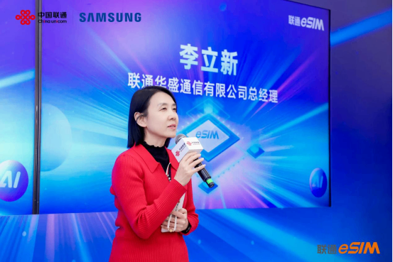 上午10时,首销仪式正式启幕。联通华盛通信有限公司李立新总经理在开场致辞中表示,eSIM技术正驱动产业深刻变革,中国联通全力将变革红利传递给用户。同时,立新总宣布三星国内首款eSIM手机Galaxy S26系列正式上市,并推出专属eSIM权益礼包,未来将继续与三星等伙伴携手创新,共创“无卡化”便捷未来。