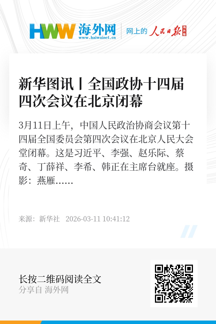 3月11日上午,中国人民政治协商会议第十四届全国委员会第四次会议在北京人民大会堂闭幕。