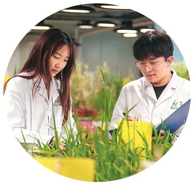 1月12日,山东省济南市泉脉农业公司的科研人员在监测记录小麦优良品系单株苗期性状。