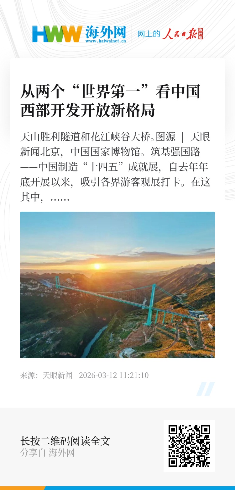 跃动在中国西部的这条条新路,往大处说,打通区域发展动脉、畅通内外循环格局,让西部深度融入国家发展大局,是促进各民族交往交流交融、铸牢中华民族共同体意识的同心路;往小处说,是串联万家烟火的幸福路,是承载希望、通向未来的振兴路。