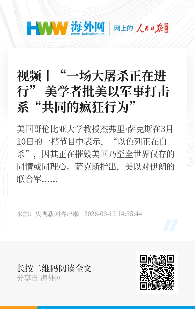 萨克斯指出,美以对伊朗的联合军事打击正在杀害成千上万的人,“一场大屠杀正在进行”。他警告,该地区石油供应完全中断将引发现代史上最严重的经济危机。