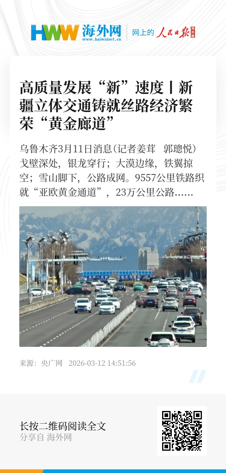 当钢铁动脉贯通天山南北,当智慧物流链接国内国际,一个“人畅其行、物畅其流”的新疆,正以“东联西出”的战略气魄,加速构建贯通国内、辐射中亚、通达全球的现代化综合交通枢纽,在高质量发展的大道上铿锵前行,谱写着新时代“疆来更好”的壮美华章!