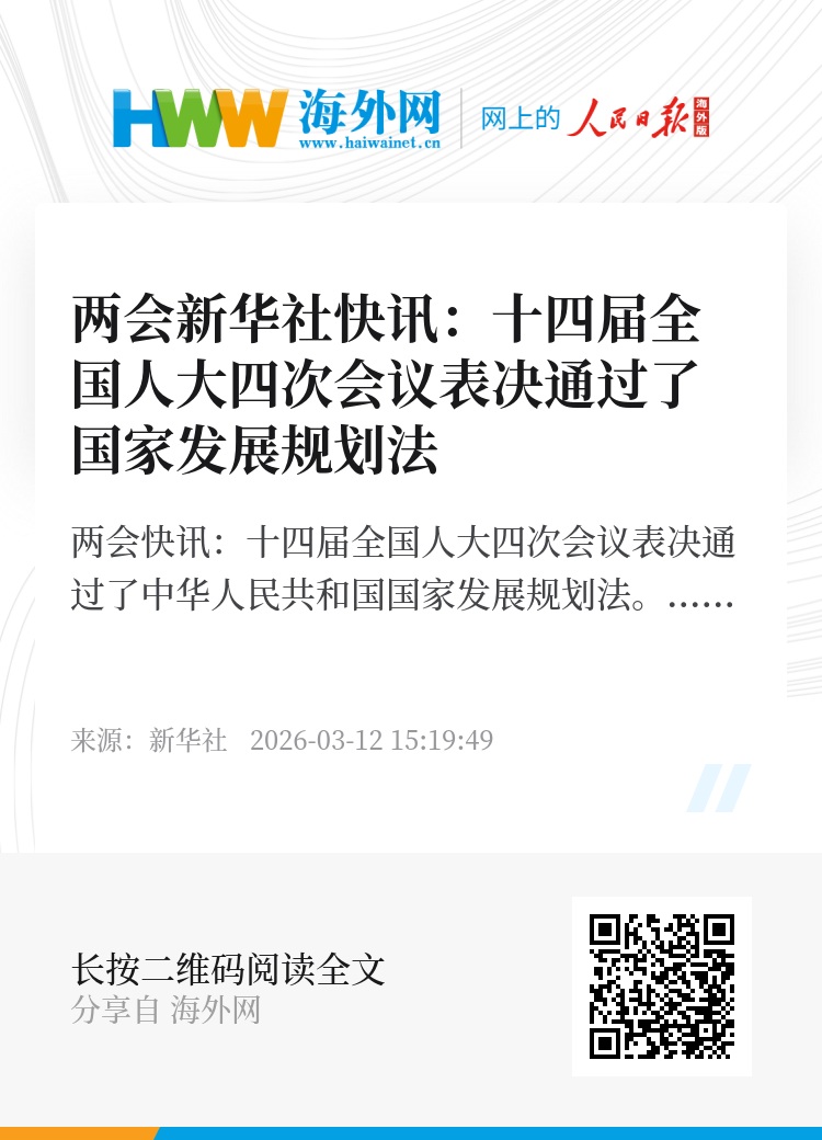 两会新华社快讯:十四届全国人大四次会议表决通过了国家发展规划法