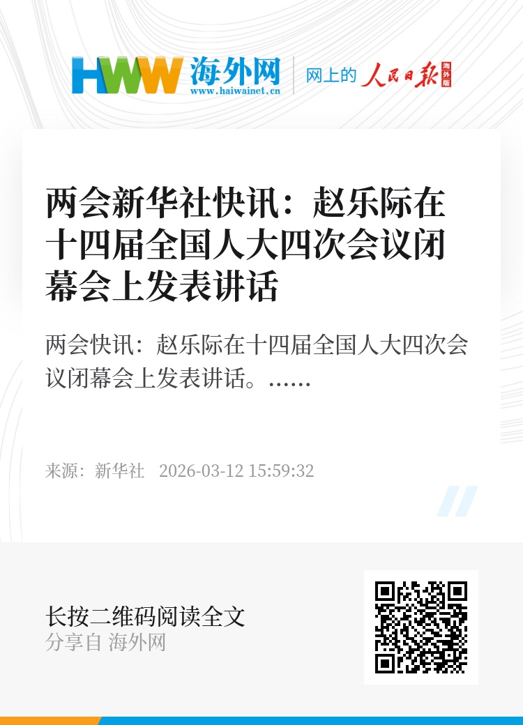 两会新华社快讯:赵乐际在十四届全国人大四次会议闭幕会上发表讲话