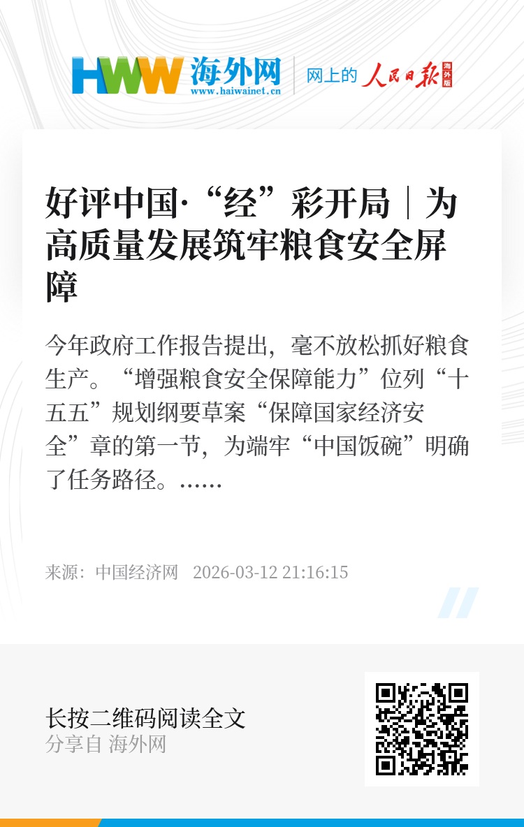 今年政府工作报告提出,毫不放松抓好粮食生产。“增强粮食安全保障能力”位列“十五五”规划纲要草案“保障国家经济安全”章的第一节,为端牢“中国饭碗”明确了任务路径。