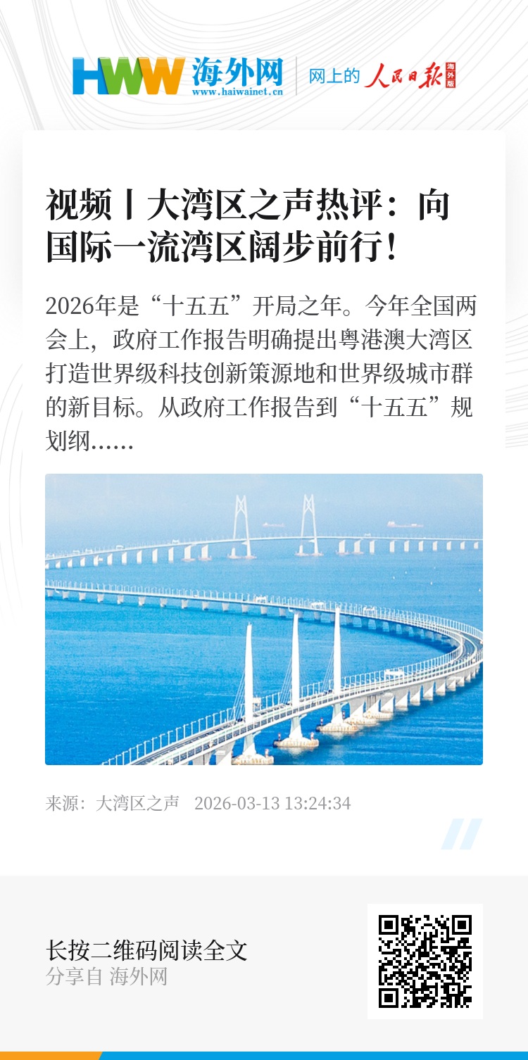 2026年是“十五五”开局之年。今年全国两会上,政府工作报告明确提出粤港澳大湾区打造世界级科技创新策源地和世界级城市群的新目标。从政府工作报告到“十五五”规划纲要草案,大湾区建设备受瞩目,持续引发热议。对此,代表委员深感振奋、满怀信心,纷纷表示立足“十五五”新起点,粤港澳必将抢抓机遇、乘势而上,奋力推动粤港澳大湾区向国际一流湾区阔步前行。