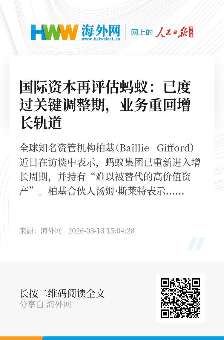 全球知名资管机构柏基(Baillie Gifford)近日在访谈中表示,蚂蚁集团已重新进入增长周期,并持有“难以被替代的高价值资产”。柏基合伙人汤姆·斯莱特表示,蚂蚁集团已度过监管调整阶段,获得了清晰的经营资质与许可,其业务正稳定恢复增长。