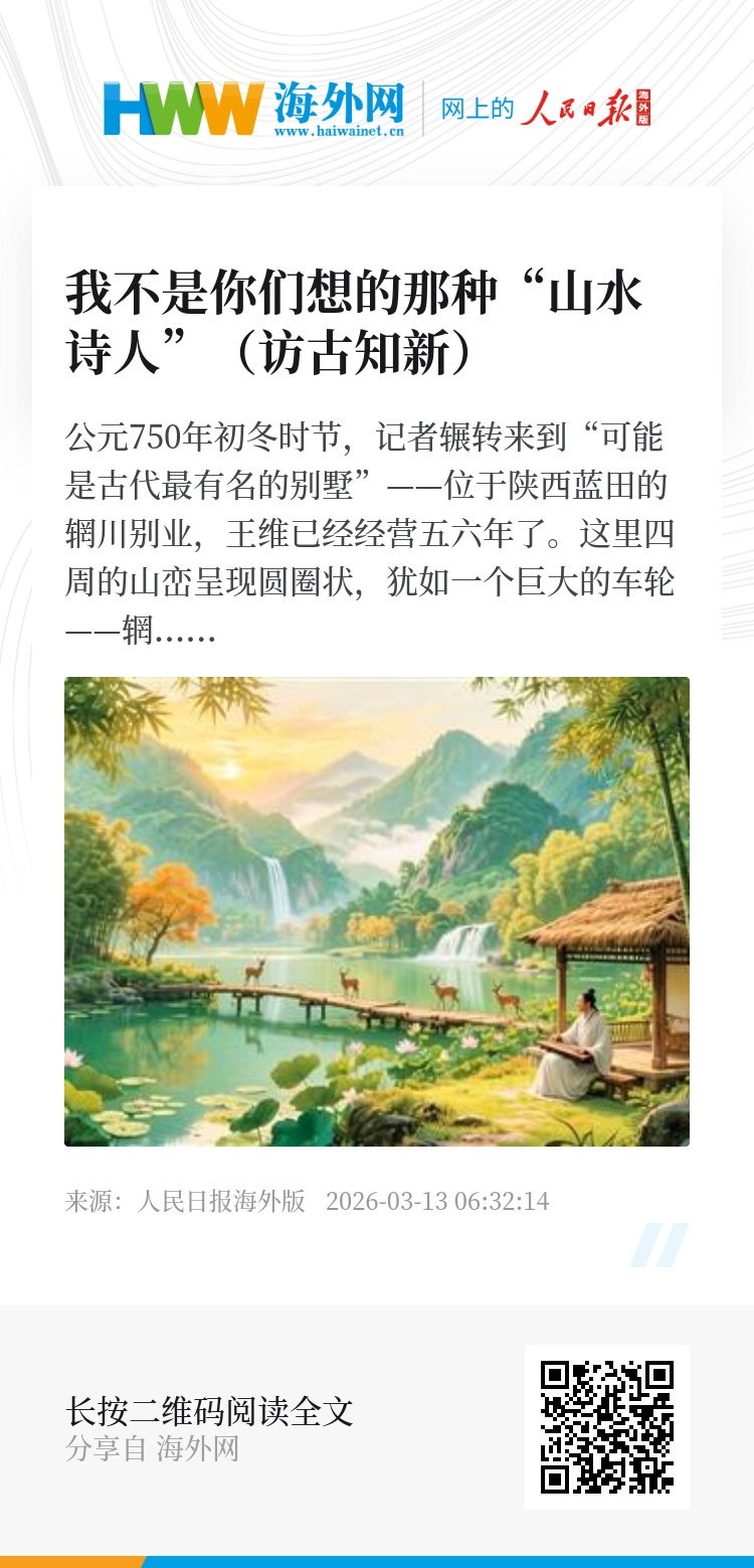 王维(AI模拟):山水么?倒也写过一些。不过若说我只写山水,或仅以山水诗闻名,那可就把我看小了。这么说吧,在我们大唐,诗坛上有李白那样的天才,有杜甫那样的地才。我呢,大概算个“人才”——各方面都还过得去的人才。