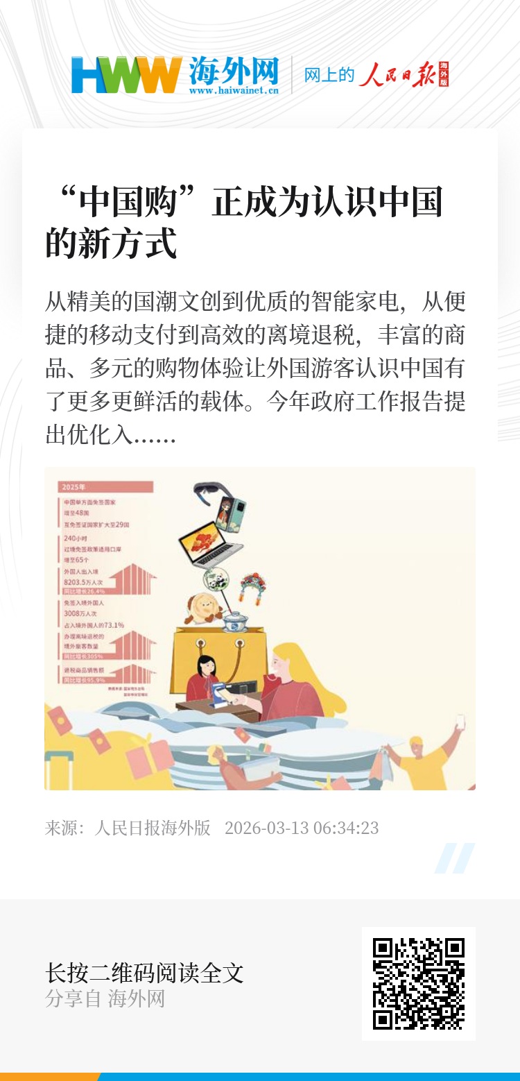 国家税务总局数据显示,2025年办理离境退税的境外旅客数量同比增长305%,退税商品销售额同比增长95.9%。中国正用满满诚意与过硬品质,让全球游客带走多重好礼,感受活力中国。