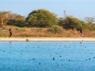 在肯尼亚内罗毕,中国企业为当地量身定制污水处理方案,中企修复扩建的内罗毕丹多拉污水处理厂成为多种鸟类的重要栖息地和公众环保教育的重要场所。图为当地居民经过丹多拉污水处理厂。