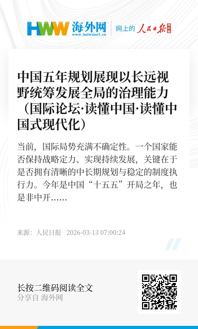 在五年规划的推动下,中国正加快构建以新质生产力为核心的现代化产业体系,通过科技创新与绿色转型积累新优势。近年来,中国研发经费投入强度持续提升,战略性新兴产业、高技术制造业增加值占比不断提高;可再生能源装机容量以及风电、光伏发电装机规模均居世界前列;新能源汽车产销量多年位居全球第一。人工智能、量子信息、先进制造、生物技术等领域加速突破,为产业升级注入强劲动力。中国正在以科技创新重塑全球价值链格局,推动形成更加开放、包容、共赢的发展环境。