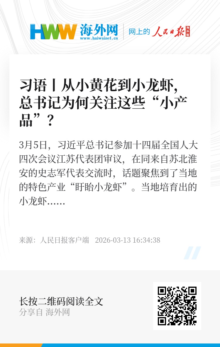 3月5日,习近平总书记参加十四届全国人大四次会议江苏代表团审议,在同来自苏北淮安的史志军代表交流时,话题聚焦到了当地的特色产业“盱眙小龙虾”。