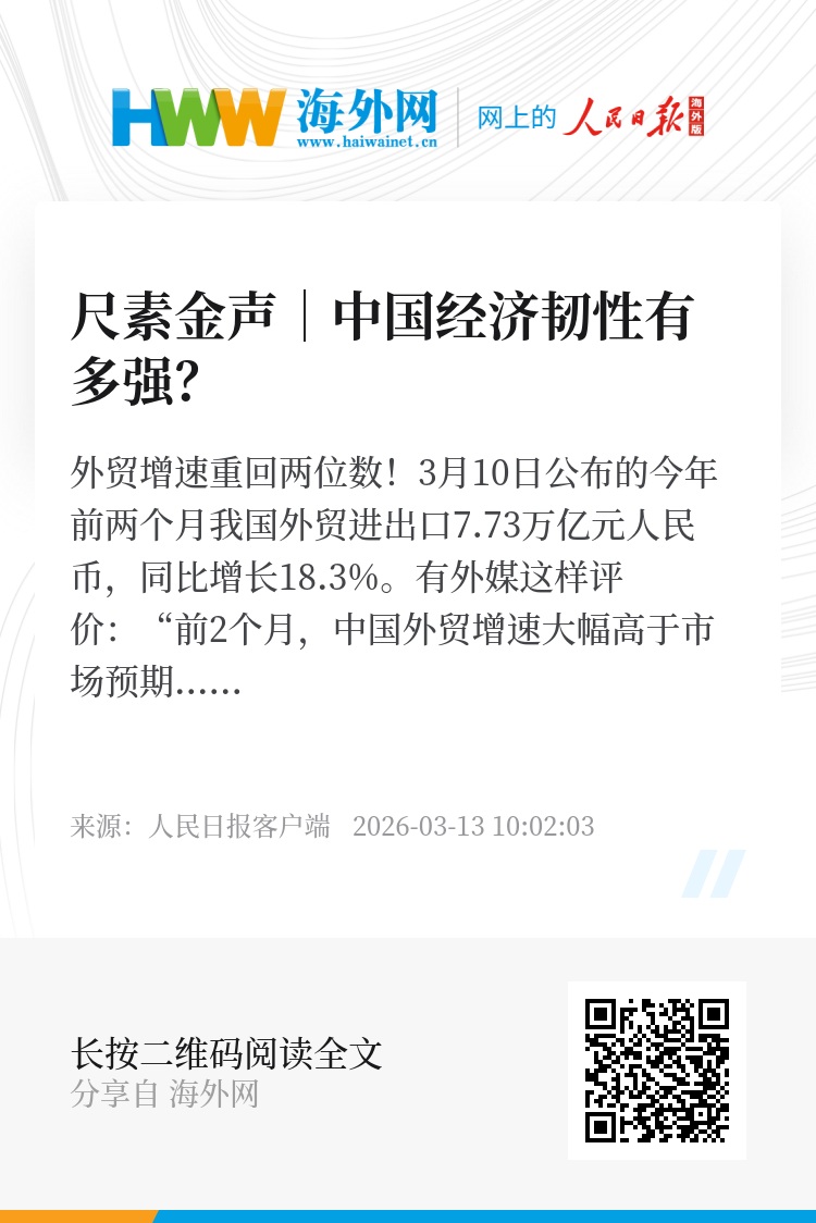 有外媒这样评价:“前2个月,中国外贸增速大幅高于市场预期,中国外贸展现极强抗波动能力与增长韧性,即便在全球贸易摩擦与地缘风险下仍保持稳健。”