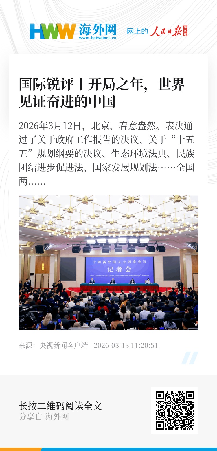 值得一提的是,今年政府工作报告首提“打造智能经济新形态”。这意味着,人工智能这个“关键变量”将成为高质量发展的“强劲增量”。阿联酋《国家报》认为,中国将智能深度嵌入经济内核,这正是世界需要理解并借鉴的深刻变革。