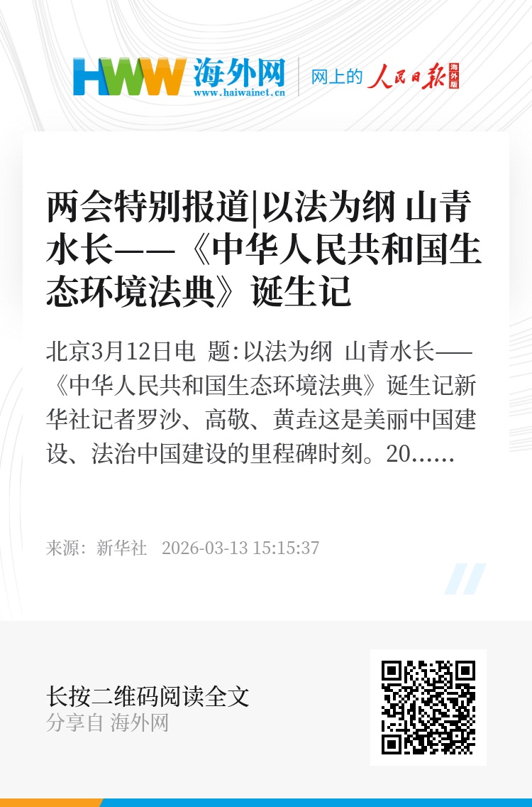 2026年3月12日下午,北京人民大会堂。十四届全国人大四次会议高票表决通过了《中华人民共和国生态环境法典》。