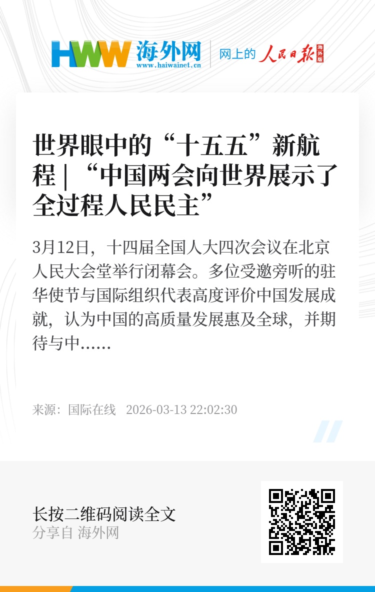 多位受邀旁听的驻华使节与国际组织代表高度评价中国发展成就,认为中国的高质量发展惠及全球,并期待与中国在各领域深化合作。
