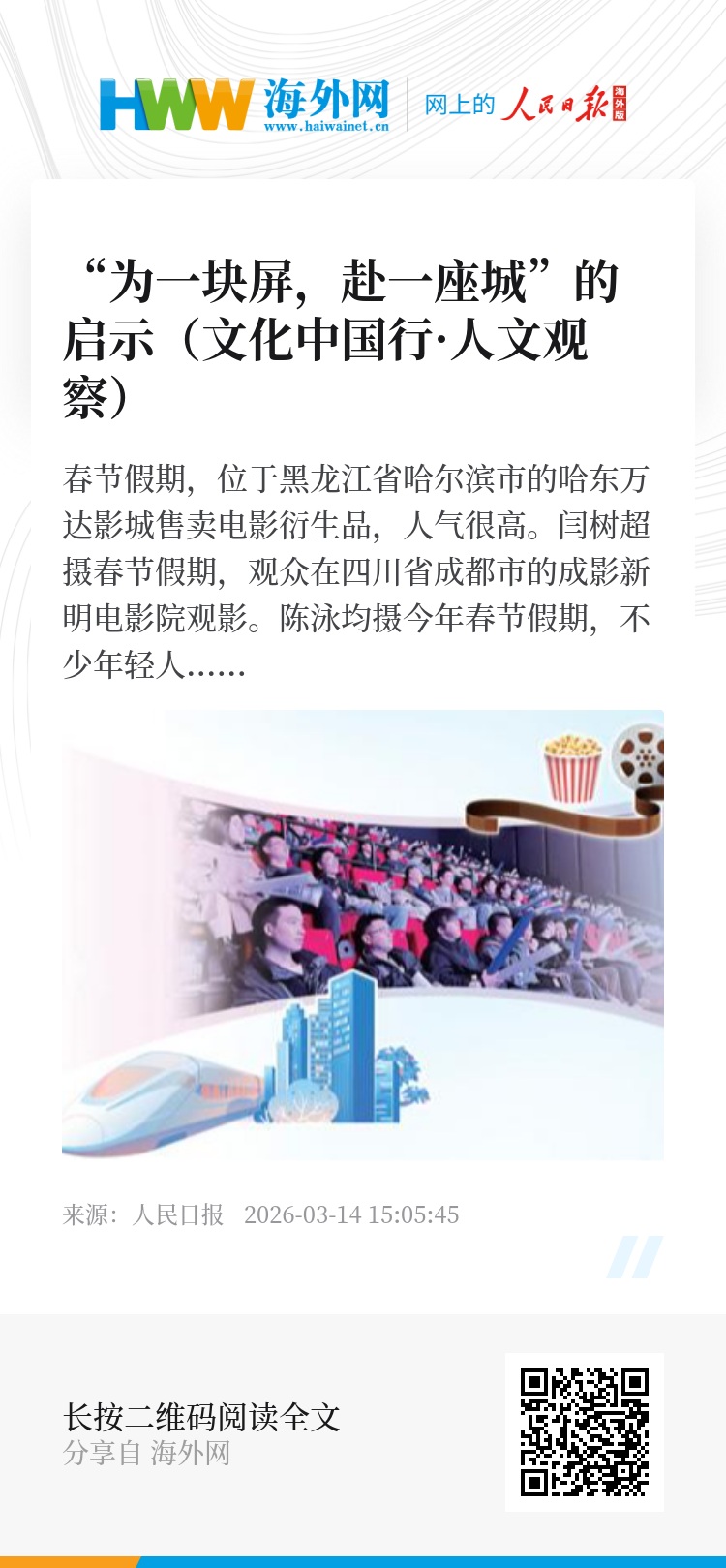 “随着居民收入提升,跨城观影逐渐成为一种新型休闲方式。就像有人专门去外地看演出、看展览一样,一次行程实现多重体验,性价比和获得感都很高,这也是吸引他们奔赴而来的重要原因。”辽宁省科学技术协会副主席王一凡说。