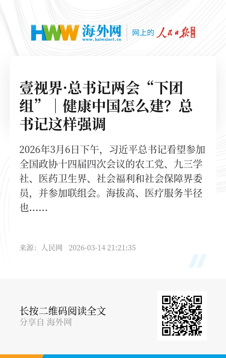 2026年3月6日下午,习近平总书记看望参加全国政协十四届四次会议的农工党、九三学社、医药卫生界、社会福利和社会保障界委员,并参加联组会。