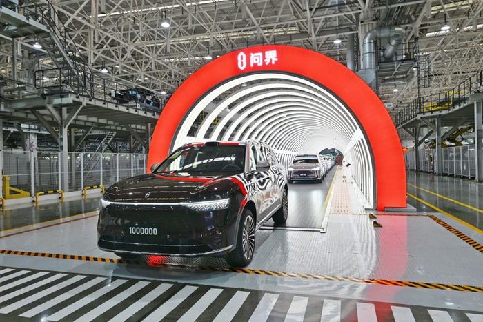 2026年1月13日,在位于重庆两江新区的赛力斯超级工厂,第100万辆问界新能源汽车下线。新华社发(王加喜摄)