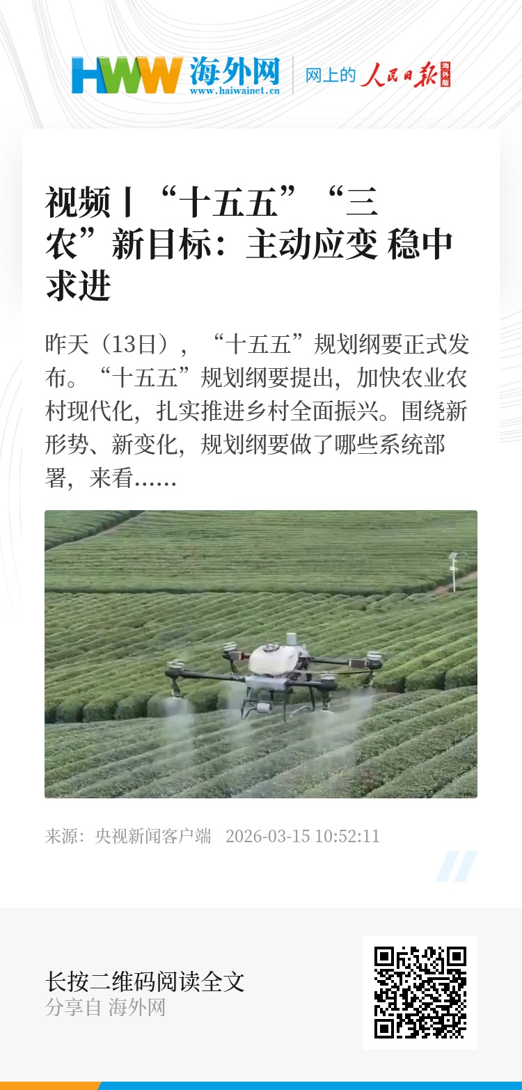 昨天(13日),“十五五”规划纲要正式发布。“十五五”规划纲要提出,加快农业农村现代化,扎实推进乡村全面振兴。围绕新形势、新变化,规划纲要做了哪些系统部署,来看专家的解读。