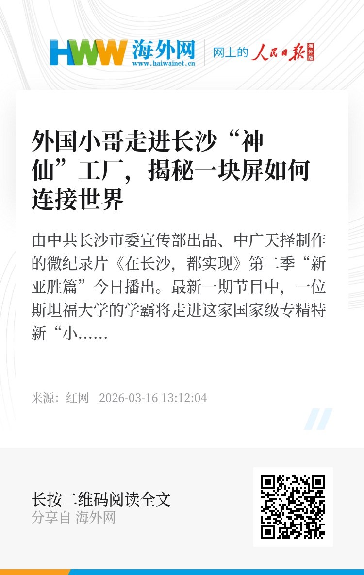 由中共长沙市委宣传部出品、中广天择制作的微纪录片《在长沙,都实现》第二季“新亚胜篇”今日播出。最新一期节目中,一位斯坦福大学的学霸将走进这家国家级专精特新“小巨人”企业,在全自动车间、国家认证实验室里,亲身感受“长沙智造”的硬核实力与人性温度。
