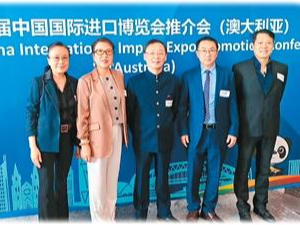 图为曹佩青(左二)在悉尼参加第九届中国国际进口博览会推介会(澳大利亚)。
