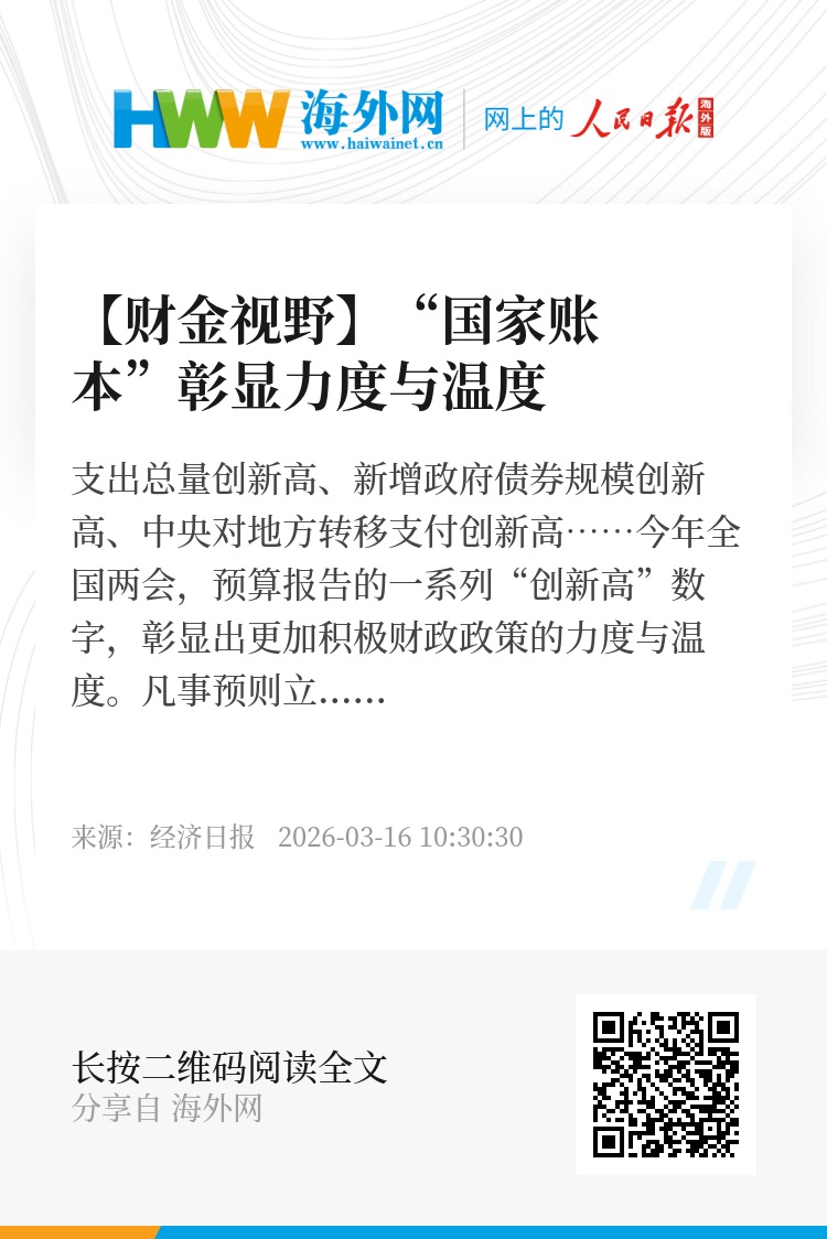 “国家账本”不仅仅是一串串数字,其背后是一系列科学有效的政策安排与真金白银的资金投入。今年的预算安排有效落实更加积极的财政政策,向稳就业、稳企业、稳市场、稳预期注入了强劲动能,将护航“十五五”实现良好开局。(本文来源:经济日报 作者:曾金华)