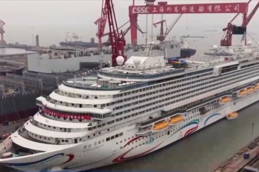 中船集团外高桥造船邮轮项目部副部长 张强:船舶下水到码头后,我们主要围绕两大节点:第一个是试航节点,我们即将在5月中下旬进行试航;第二个大节点就是船舶交付节点。围绕试航,我们要把相关试验在接下来一段时间完成,确保整个试航工作的顺利开展。在试航之后,我们重点围绕整个区域的交付,最终以比较完美的状态交付给船东。