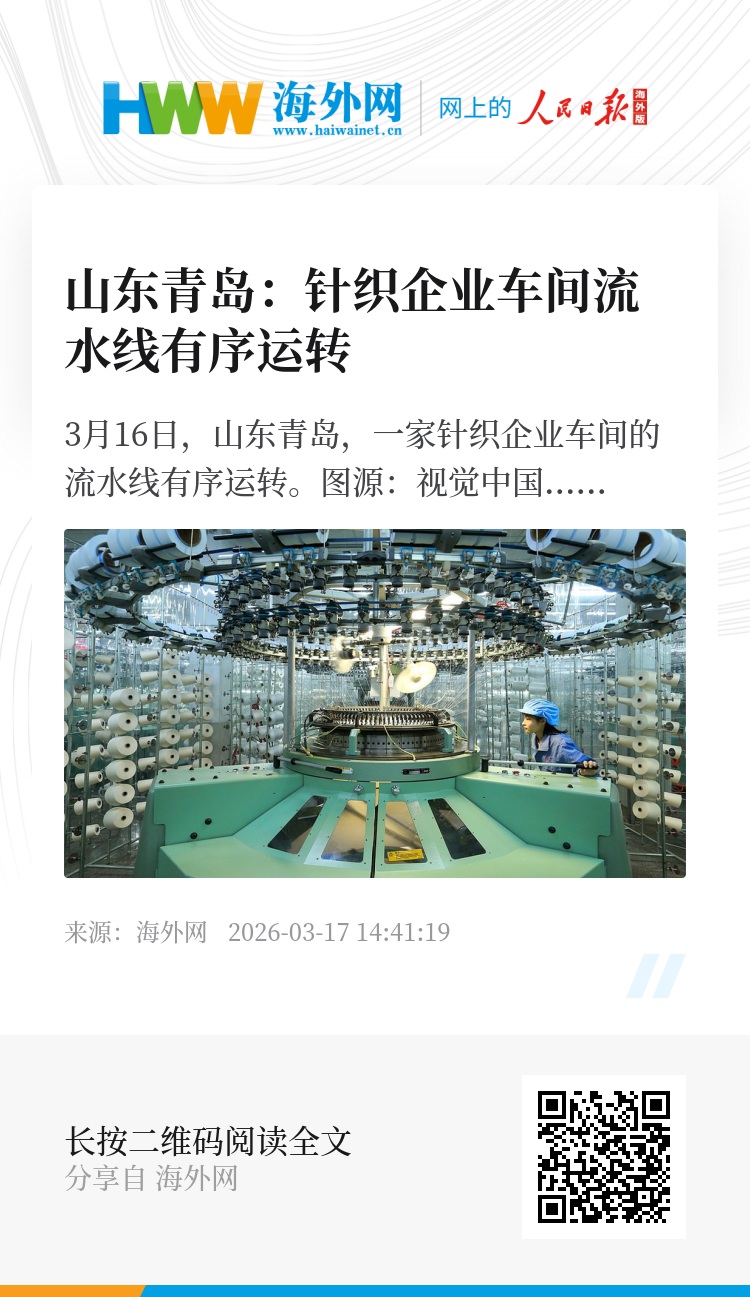32938570,.山东青岛:针织企业车间流水线有序运转,.2026-03-17 14:41:19,.204309,.陈亚楠、张振