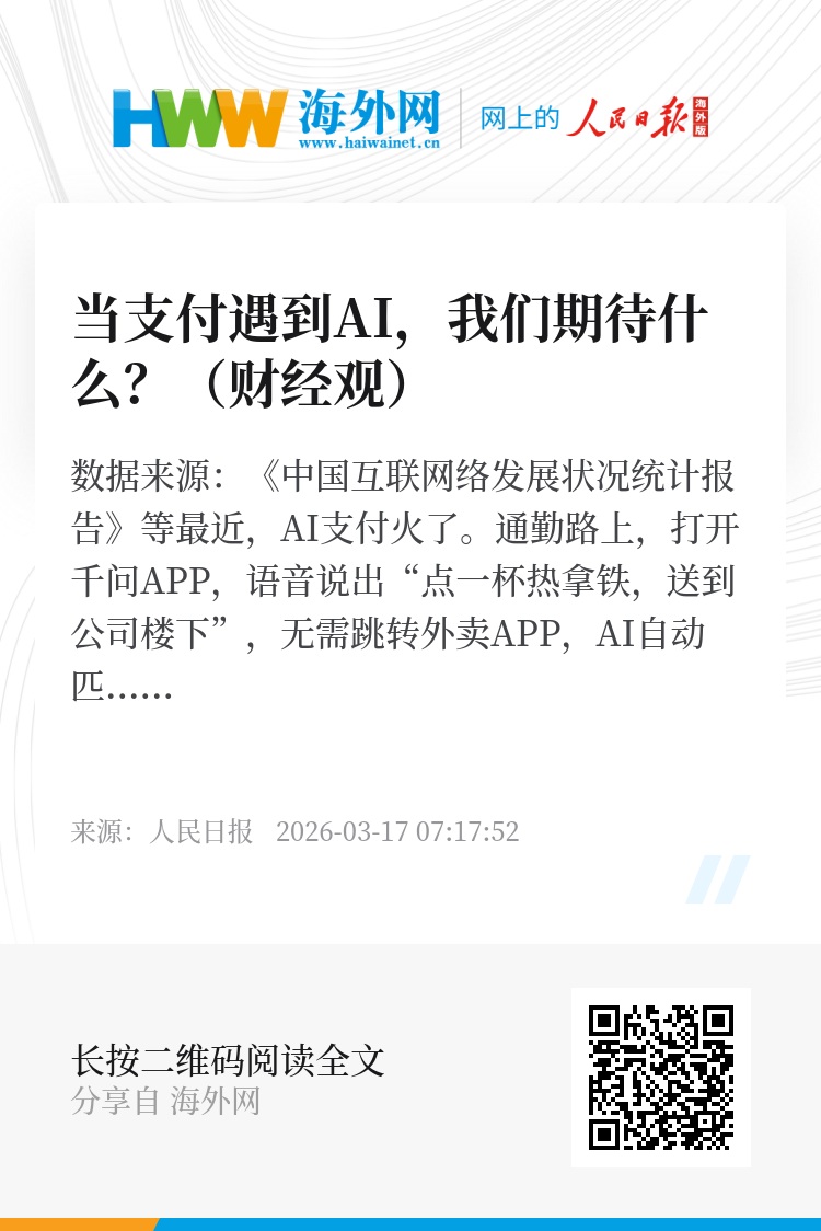 回望支付升级之路,每一次迭代都以降低门槛、提升效率为核心。从银行卡支付的标准化结算,到移动支付“扫一扫”的普及,再到如今AI支付的对话即付、无感完成,支付介质不断简化,支付形态不断进化,服务边界持续拓展,支付成为融入生活的智能服务。由“完成交易”走向“服务生活”,搭上AI这趟列车,支付还有更多可能。