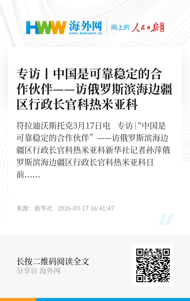 新华社符拉迪沃斯托克3月17日电 专访|“中国是可靠稳定的合作伙伴”——访俄罗斯滨海边疆区行政长官科热米亚科