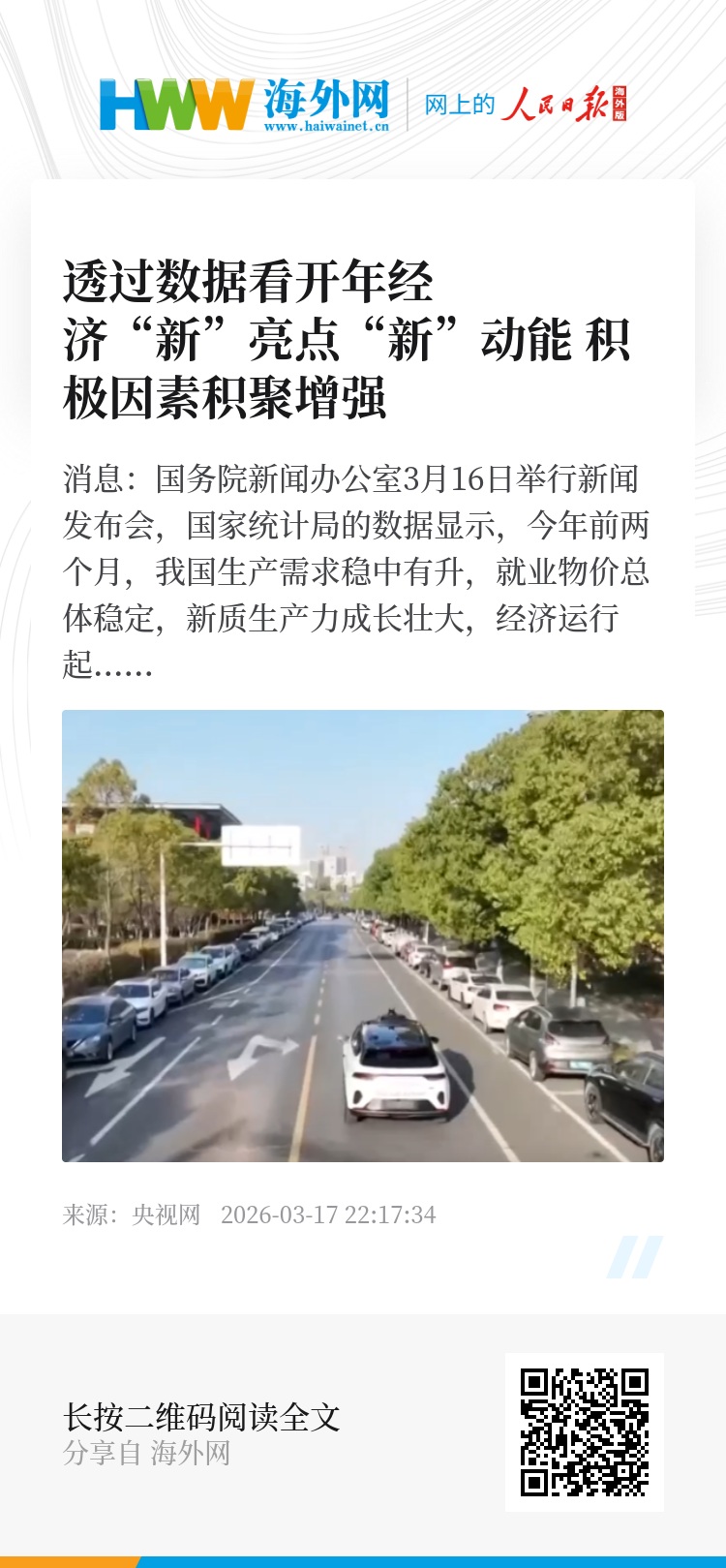 央视网消息:国务院新闻办公室3月16日举行新闻发布会,国家统计局的数据显示,今年前两个月,我国生产需求稳中有升,就业物价总体稳定,新质生产力成长壮大,经济运行起步有力,实现良好开局。