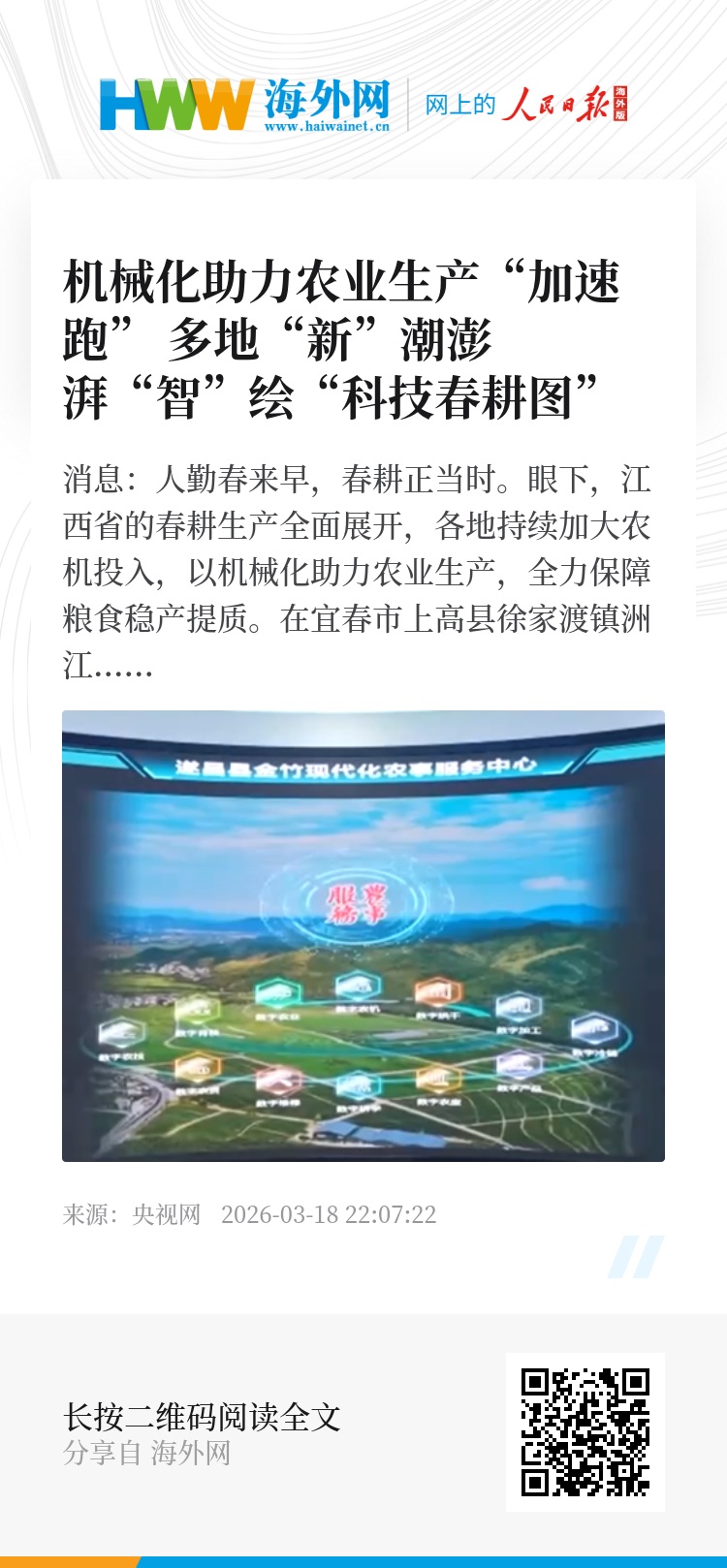 央视网消息:人勤春来早,春耕正当时。眼下,江西省的春耕生产全面展开,各地持续加大农机投入,以机械化助力农业生产,全力保障粮食稳产提质。