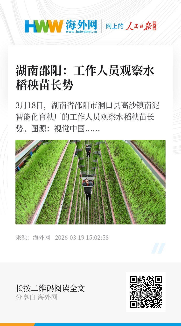 32939096,.湖南邵阳:工作人员观察水稻秧苗长势,.2026-03-19 15:02:58,.204309,.陈亚楠、王珊宁