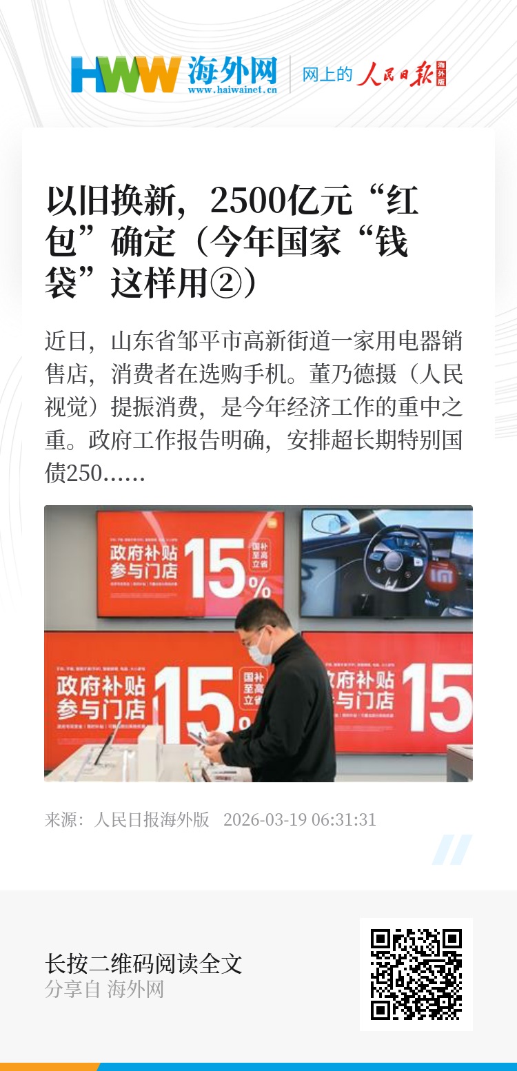 提振消费,是今年经济工作的重中之重。政府工作报告明确,安排超长期特别国债2500亿元支持消费品以旧换新。