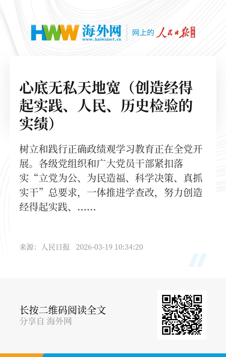 树立和践行正确政绩观学习教育正在全党开展。各级党组织和广大党员干部紧扣落实“立党为公、为民造福、科学决策、真抓实干”总要求,一体推进学查改,努力创造经得起实践、人民、历史检验的实绩。