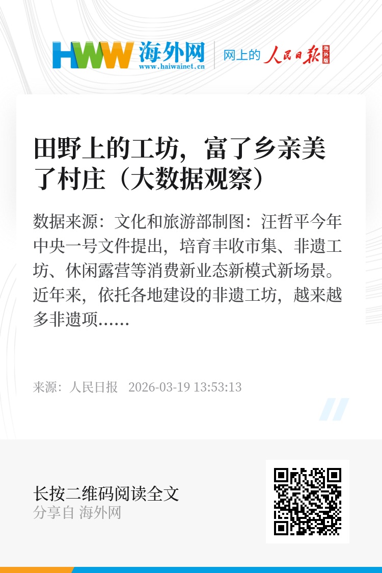 今年中央一号文件提出,培育丰收市集、非遗工坊、休闲露营等消费新业态新模式新场景。近年来,依托各地建设的非遗工坊,越来越多非遗项目和传统手艺融入现代生活。